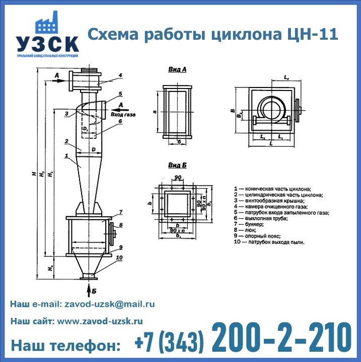 При этом ощутимой разницы в цене между универсальным и узконаправленным, подобранным в соответствии с конкретными техническими требованиями циклоном, нет. Стоимость воздухоочистительного оборудования типа циклон обусловлена маркой и толщиной стали, из которого он изготовлен, сложностью и специфичностью конструкции, наличием дополнительного оснащения (бункер, улитка и другие). При необходимости, на заводе УЗСК в Капшагае будет изготовлен циклон по индивидуальным техническим чертежам заказчика.