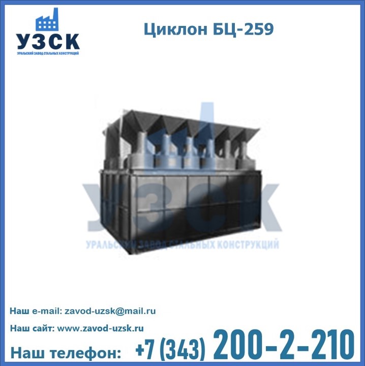 Приобрести качественное оборудование, в том числе, циклоны БЦ-259, можно в компании УЗСК в Капшагае. Мы предлагаем долговечную и надежную продукцию по приемлемой цене. Заказать и купить циклоны или другие изделия высокого качества можно через сайт Уральского Завода Стальных Конструкций, или позвонив по указанному в разделе «Контакты» телефону.